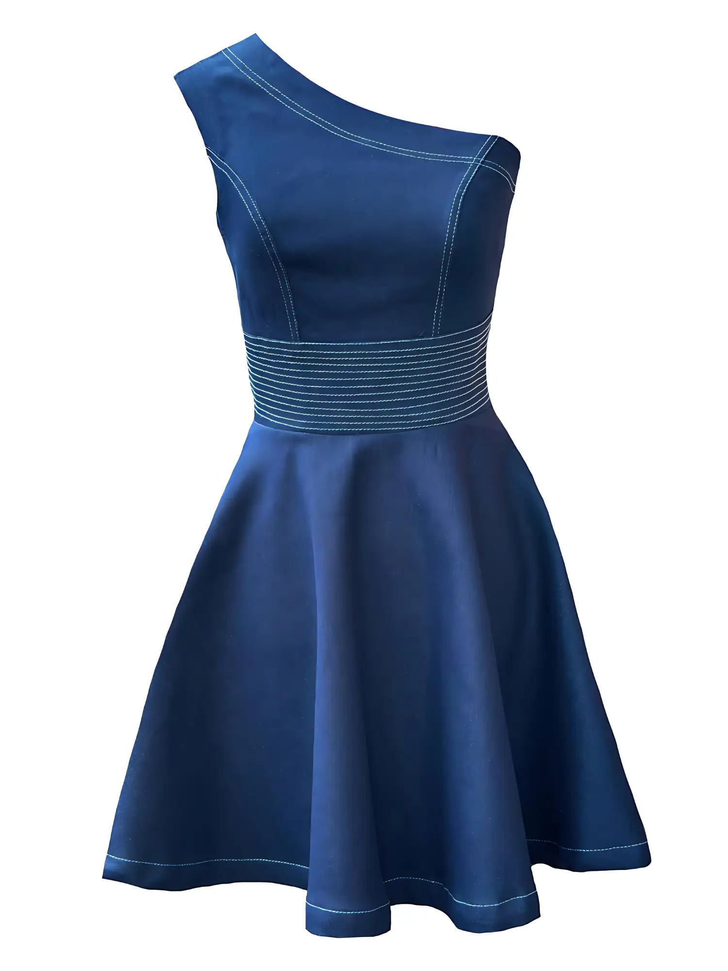 Elevate your wardrobe with our stunning flared denim dress featuring a chic one-shoulder design. The sleek, topstitched waistline beautifully accentuates your curves, creating a flattering silhouette that’s perfect for any occasion. Whether you're heading out for brunch or a night on the town, this versatile dress combines comfort and style effortlessly. Embrace your unique flair and make a statement with this must-have piece!